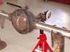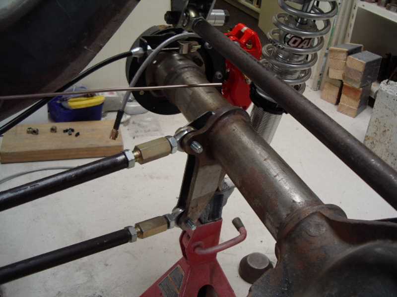 To be Superbell I-beam axle, cross sprung, split hair pin type radius rods with QA1 single adjustable shocks.